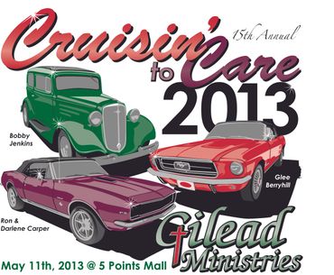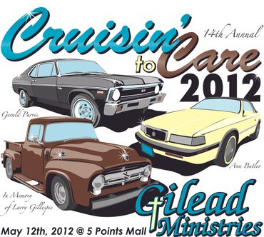 My hometown of Marion, Indiana is known for many things, but the first one that comes to mind is classic car shows. For over 15 years I had the pleasure of designing and illustrating Shirts for many of these car shows, including James Dean Days, Ducktail Run, and last but not least, the Gilead Ministries fundraising car show. Gilead ministers to cancer patients and I was honored to contribute to a cause that is near and dear to my heart. Each year the previous year’s winners would have the distinction of having their car on that year’s shirt. Armed with a photograph of each car, I would illustrate the cars and create a 3-4 color design suitable for the screen printing process. I also designed the back of the shirt, converting (and sometimes creating) the sponsoring local businesses' logos into 1 color for screen printing.